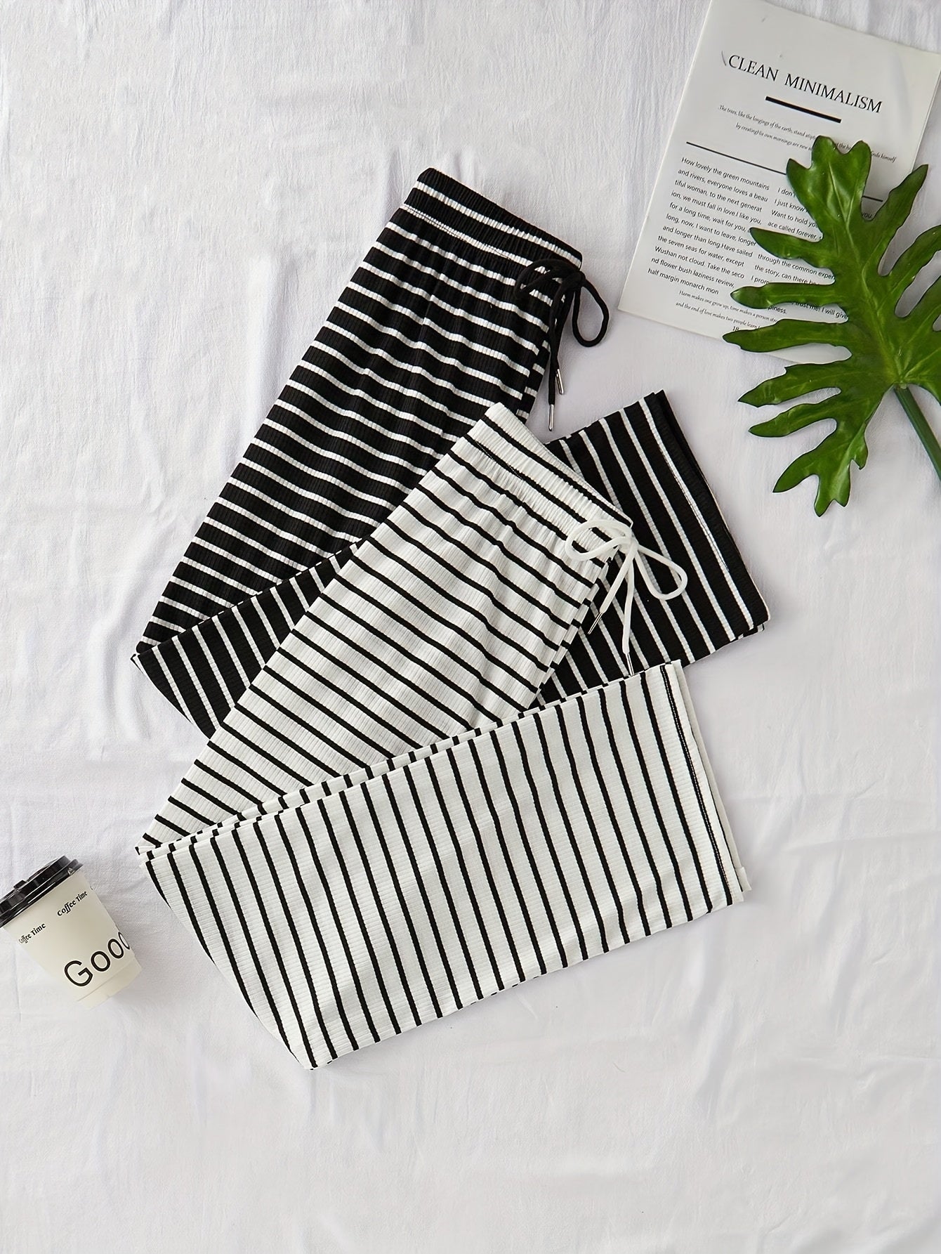 Müheloser Komfort trifft auf modernen Minimalismus – dieses zweiteilige gestreifte Hosenset kombiniert atmungsaktives Strickgewebe mit einer entspannten Silhouette – perfekt zum Entspannen oder für lässige Ausflüge. Cafe y Calle vereint zeitlosen Komfort und urbane Schlichtheit mit hochwertigen Materialien und exklusiven Preisen.