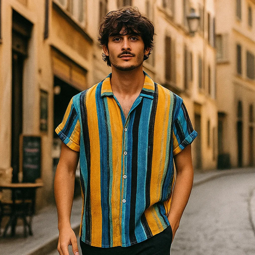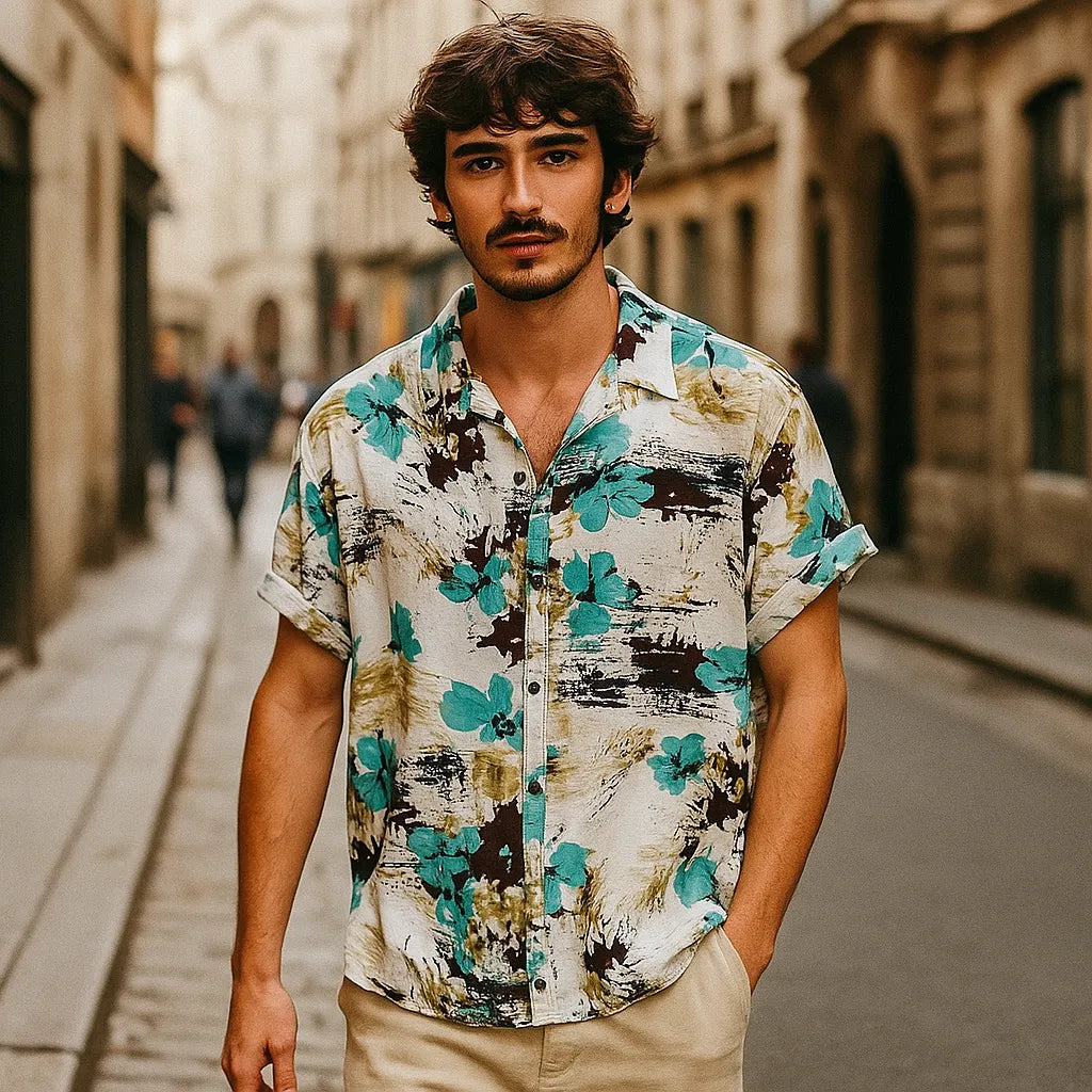 Starten Sie in die Saison mit unserem Bedrucktes Hemd mit Strandurlaubs-Print, entworfen, um die Essenz sonnenverwöhnter Abenteuer und entspannten Küstenlebens einzufangen. Dieses bequeme und stilvolle Hemd ist Ihr perfekter Begleiter für Strandausflüge, tropische Ferien oder zwanglose Treffen.