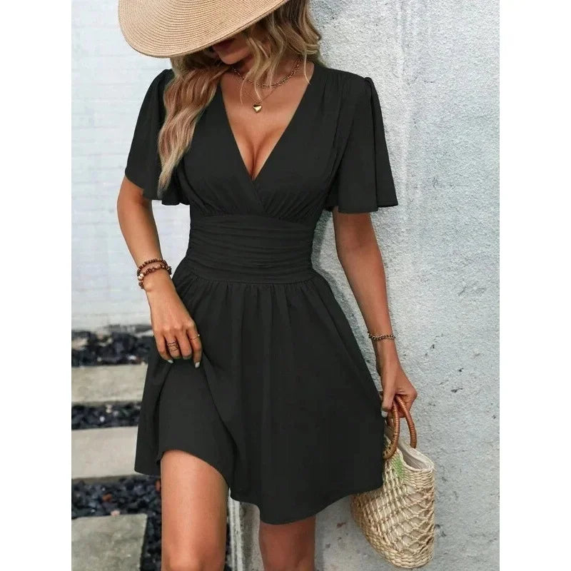 Entdecken Sie mühelose Eleganz mit diesemkurzes Kleid mit V-Ausschnittvom Café y Calle.