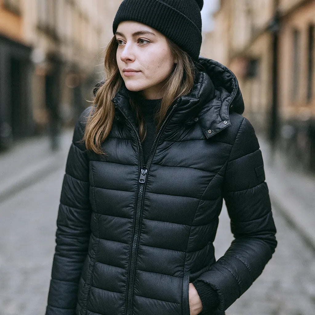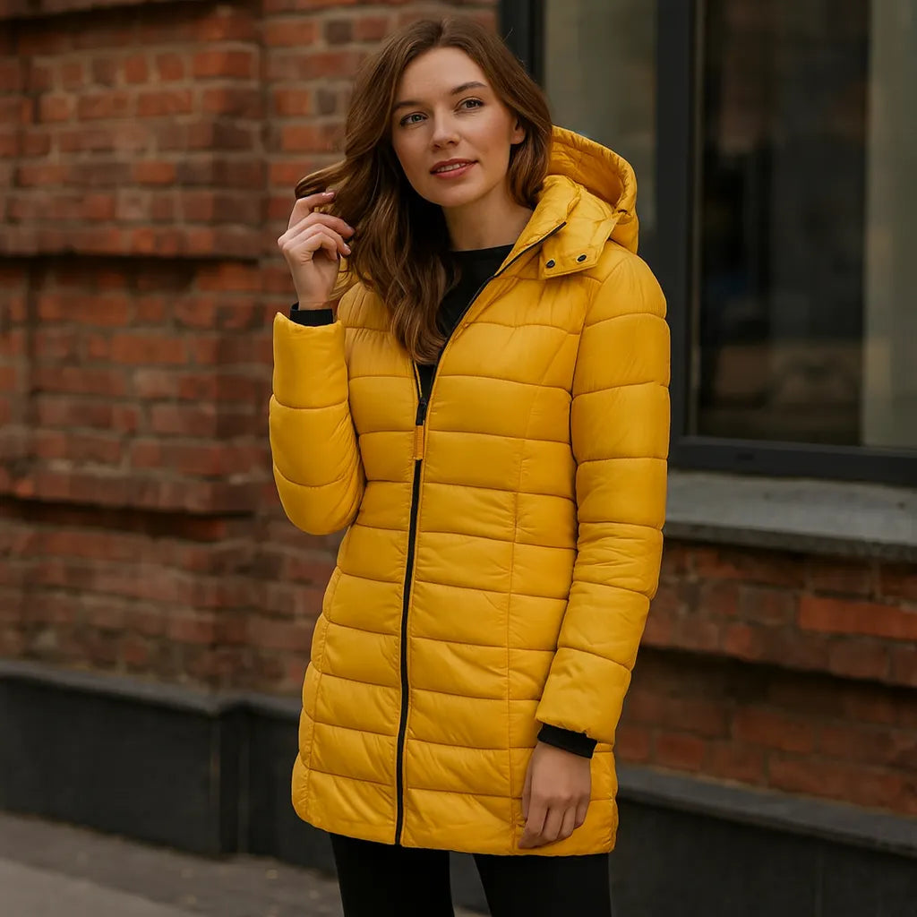 Die CYC Winter Warm Puffer Jacket wurde für maximale Wärme und Komfort entwickelt und kombiniert ein leichtes Tragegefühl mit hoher Wärmeisolierung. Ihre schlanke, schmeichelhafte Silhouette und die verstellbare Kapuze machen sie perfekt für kaltes Wetter, ohne dass sie auf Stil verzichten muss.