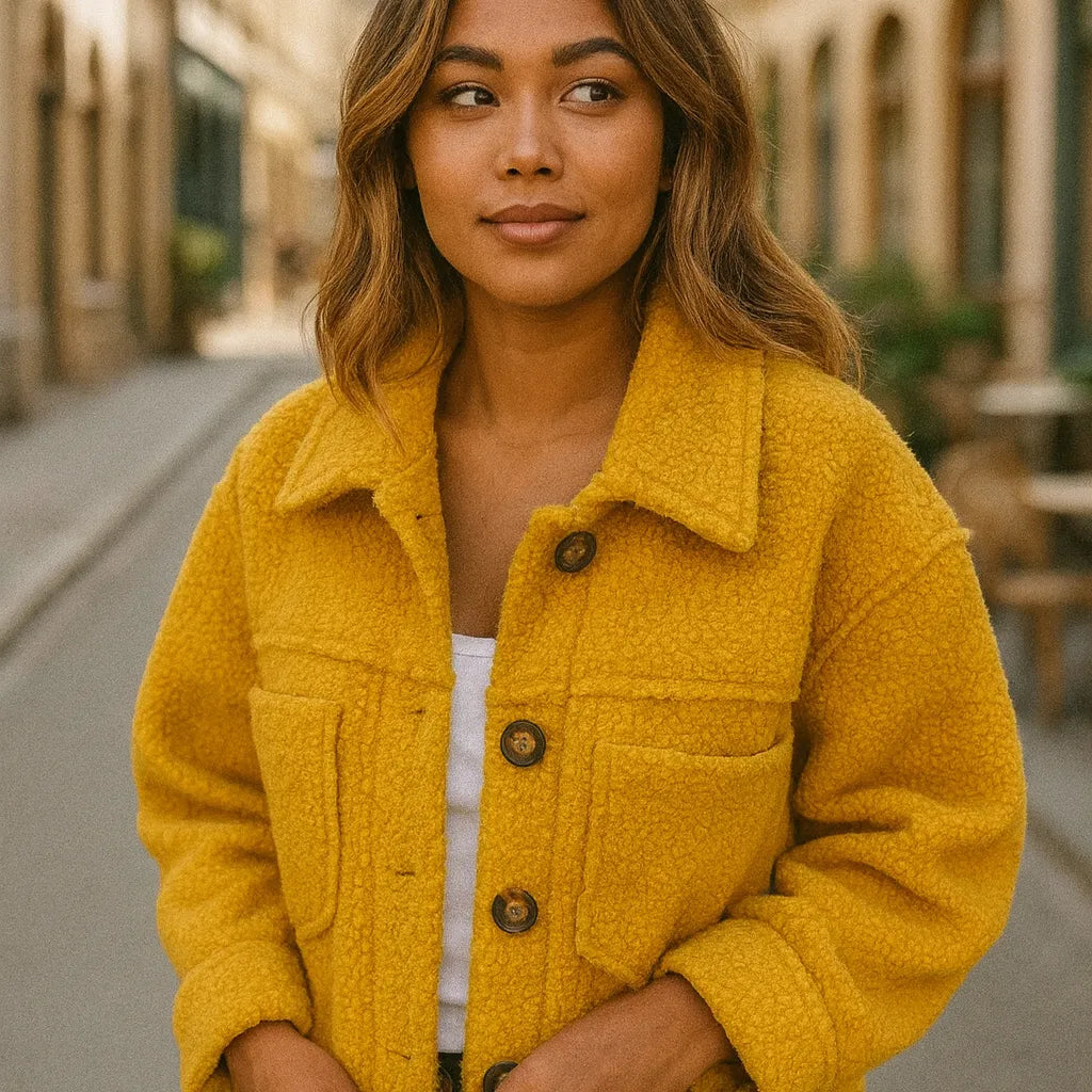 „Ich liebe diese Jacke! Der Stoff fühlt sich an wie echte Wolle – superwarm, stylisch und leicht. Perfekt für den Herbst!“ –Laura Steiner