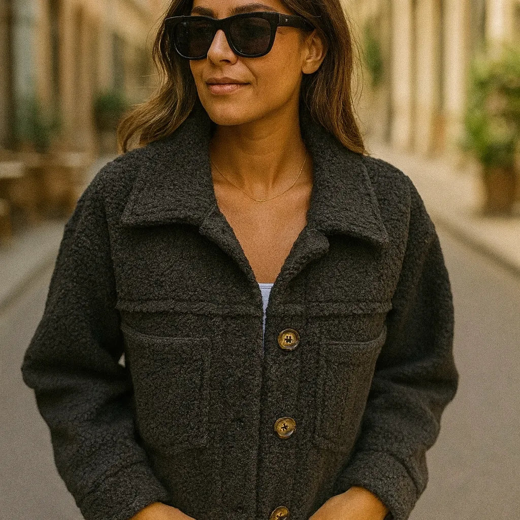 Sein weicher, strukturierter, wollähnlicher Stoff und der entspannte Schnitt machen es zum perfekten Übergangsstück – elegant und doch mühelos tragbar.